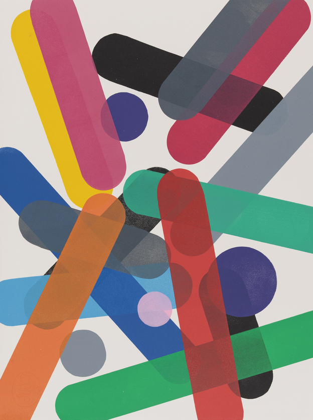 CONVERGENCE is a non-objective series focused on the formal elements of art making—shape, line, color, and texture to create purely visual compositions. The impetus for the series was to be singularly focused and dwell in the moment to act/react and build dynamic compositions. Printmaking is a balancing act that juggles intuition, impulse, and conscious decision making—which is precisely how these works were developed.