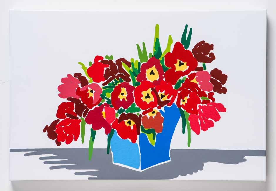 Collectively titled CMYK:ARRANGEMENTS, these new paintings are translations of digital drawings. Executed in fluid acrylic on transparent PVC, the images are developed by using the reversal painting techniques of the Middle Ages.