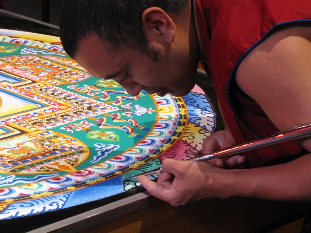 Monks from the Drepung Loseling Monastery creating a sand mandala