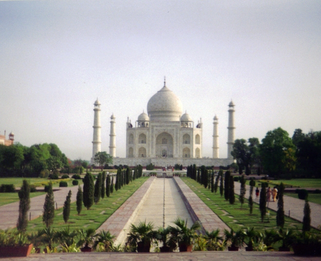 Frontal view of the Taj Mahal from the entry gate, Agra, Uttar Pradesh, India