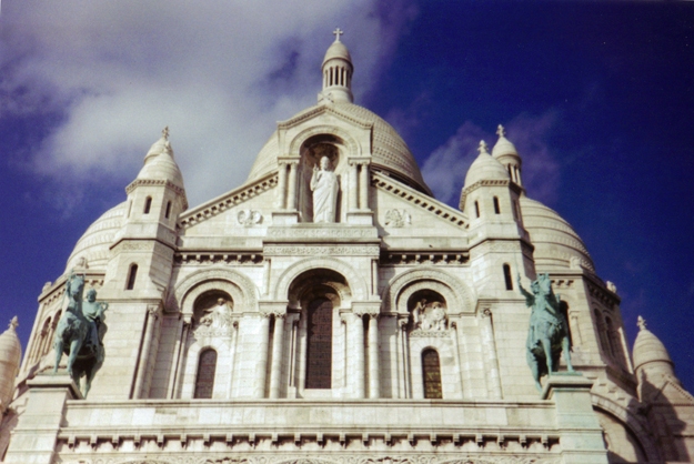 Skyward view of Sacre-Coeur Basilica, Montmartre, Paris, France