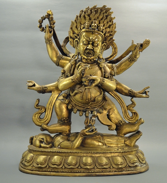 This statue is a replica of a 17th century Tibeto-Chinese Mahakala statue in the collection of the Royal Ontario Museum, Toronto, Canada.