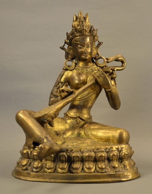 This statue is a replica of an 18th century Mongolian Vajrapani statue in the collection of the Folkens Museum, Etnografiska, Stockholm, Sweden.